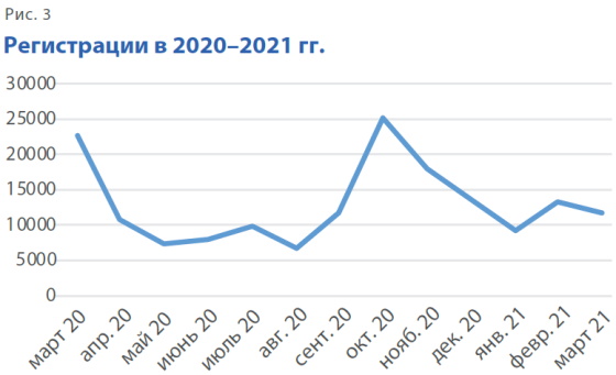 Активное увеличение числа новых читателей «ЛитРес» в библиотечных проектах пришлось не только на март 2020-го, но и на октябрь и ноябрь (рис. 3). В сравнении с предыдущим годом прирост составил 13,5 тыс. новых пользователей. Всего за 2020 год в проекте «ЛитРес: Библиотека» зарегистрировалось более 173 тыс. читателей, к проекту были подключены 440 новых библиотек.