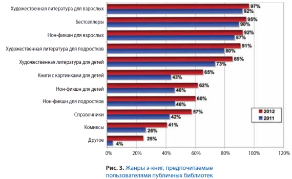 Предмет второй статьи – результаты аналогичного социологического исследования «Использование электронных книг в публичных библиотеках США в 2012 г.», проведённого известным журналом Library Journal.