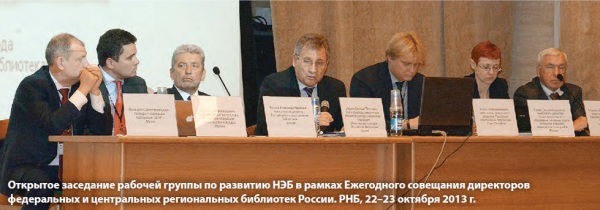 В конце октября в РНБ прошло Ежегодное совещание директоров федеральных и центральных региональных библиотек России. Тема 2013 г. – «Инновационные модели развития и качество библиотечного обслуживания граждан России». В работе совещания приняли участие 275 представителей из 77 регионов. В рамках пленарных и тематических заседаний состоялось обсуждение ключевых вопросов по управлению качеством государственных услуг в библиотеке, взаимосвязи качества обслуживания и заработной платы персонала, обеспечению информационной открытости деятельности библиотек. Впервые прошло открытое заседание рабочей группы по развитию Национальной электронной библиотеки (НЭБ).