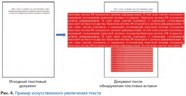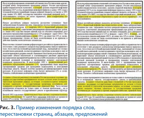 Одним из наиболее типичных примеров является изменение порядка слов и перестановка абзацев, предложений в тексте (рис. 3), что тоже выявляется экспертом.