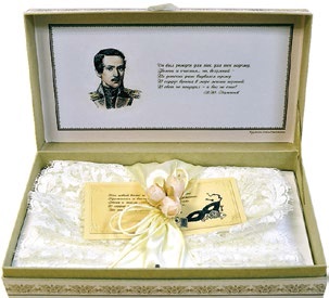 В Коломне, где производят душистые масла и историческую пастилу времён Ф.М. Достоевского, мы сделали «Лермонтовскую коробку». Это фактор удивления. Вы открываете коробку и... слышите звуки вальса «Маскарад» Хачатуряна, видите копию шарфика Нины, ощущаете аромат духов Наталии Николаевны Гончаровой, который мы воспроизвели. После этого трудно говорить занудно о Лермонтове. Вы знаете, я никогда не представляла, что наша почти шутливая идея будет предметом профессионального интереса ЮНЕСКО. Они заказали в Коломне 40 таких коробок.