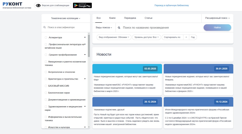 Рис. 1 Главная страница ЭБС РУКОНТ