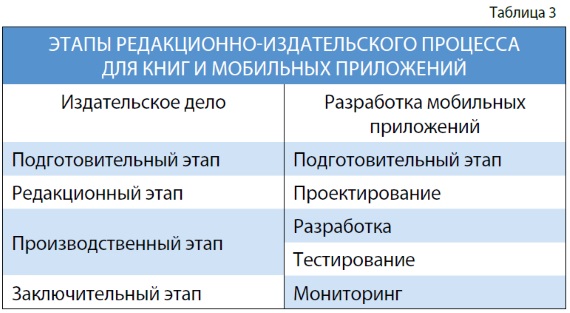 Именно поэтому финальный этап при создании мобильного приложения называется не заключительным этапом, как в книгоиздании, а мониторингом (табл. 3).