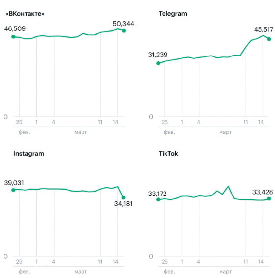 Рис. 1 Статистика количественных изменений аудитории в соцсетях от РБК