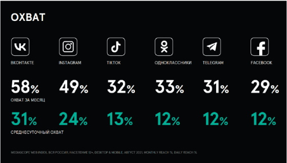 Рис. 2 Охват соцсетей по состоянию на август 2021 г.