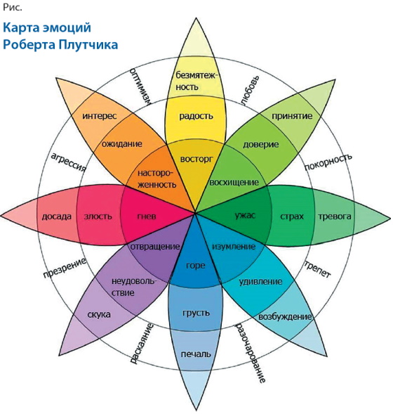 — Очень важно давать людям эмоции. Есть такая карта эмоций Роберта Плутчика (рис.); ей можно пользоваться, чтобы определить, какую реакцию мы хотим вызвать у подписчиков. Показывая, насколько сильно человек испытывает эмоцию, можно добиться результата.