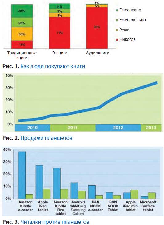 Действительно, электронной книге приходится конкурировать со многими видами медиаразвлечений (рис. 1): рынок планшетов растёт (рис. 2, 3). На чтение остаётся очень мало времени, сегодня даже в развитых странах растёт количество людей, которые никогда в жизни не покупали книг.