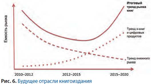 К 2017 г. ожидается некий перелом в отношении бумажных книг и выход отрасли на позитивный тренд (рис. 6). Ёмкость легального рынка э-книг прогнозируется на уровне 3 млрд рублей.