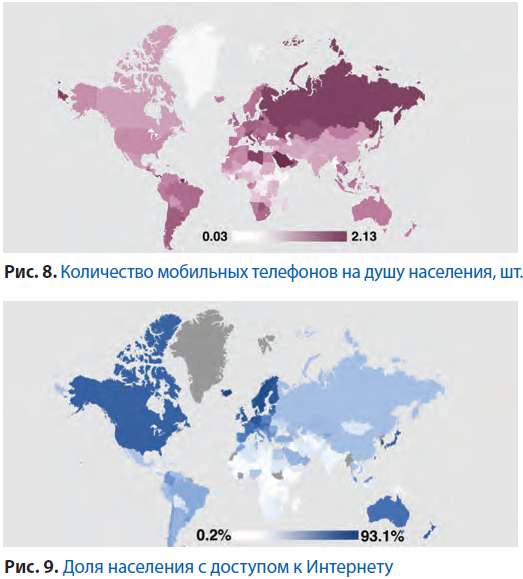 Телефоны сегодня есть у всех (рис. 8). Неважно, насколько люди образованны, они пользуются мобильными устройствами. Статистика показывает, что доля доступа населения к Интернету (рис. 9) намного меньше, чем доля покрытия сотовой связи. Это то обстоятельство, которое заставляет Bookmate создавать продукты для самых разных платформ и устройств, даже самых простых телефонов с чёрно-белыми экранами.