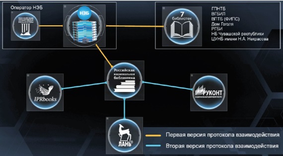 РНБ договорилась с разработчиком программного обеспечения НЭБ о том, что взаимодействие внутри НЭБ с использованием технологической платформы будет переведено на вторую версию протокола. После этого у правообладателей, реализовавших тот же самый протокол у себя, появляется возможность представлять свои коллекции в НЭБ. Издательства, подключившиеся к электронному каталогу РНБ, могут вообще ничего не менять. Запросы, поступающие от центрального портала НЭБ в РНБ, сервер РНБ будет транслировать серверу издательства, и оно исходя из того, получил правообладатель деньги за предоставление своих материалов в НЭБ или нет, станет выдавать ответ, который сервер РНБ перенаправит центральному порталу НЭБ. А можно не устраивать такое двухуровневое взаимодействие, а просто позволить издательству подключиться напрямую к центральному порталу НЭБ с использованием технологической платформы, поскольку протокол для подобного взаимодействия уже реализован.