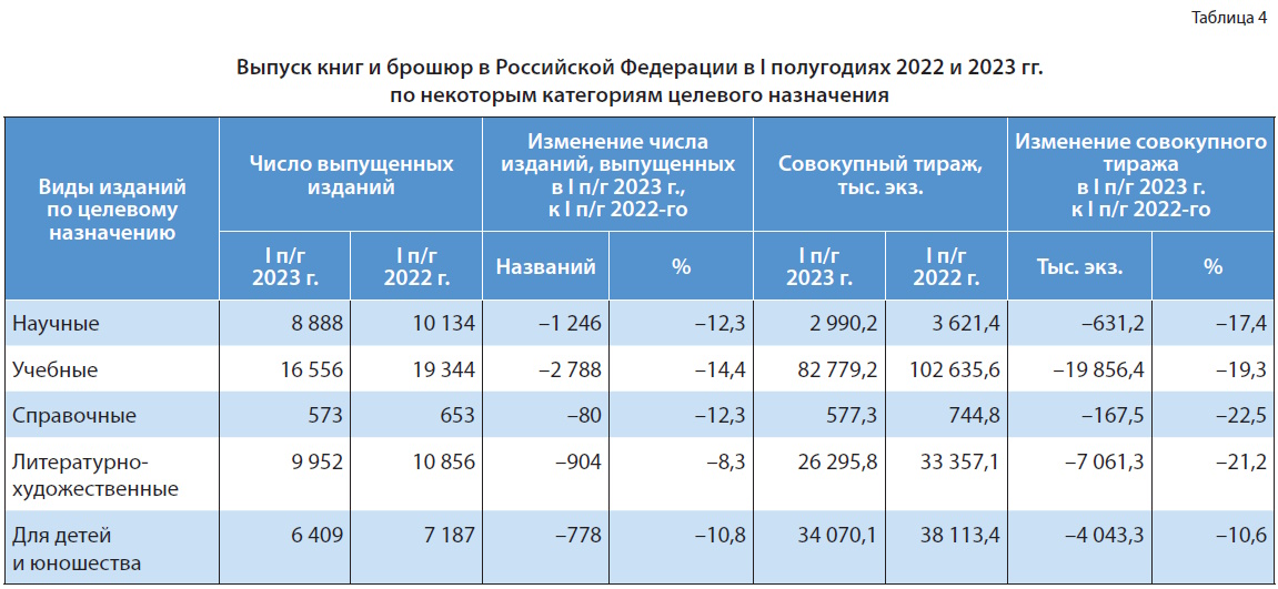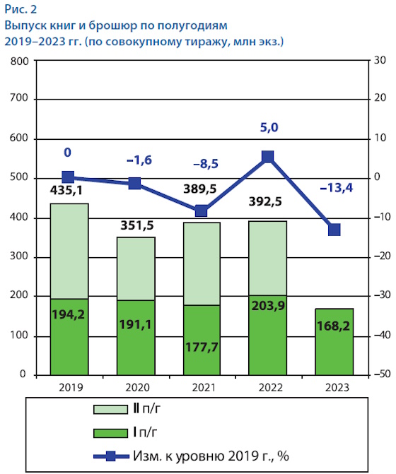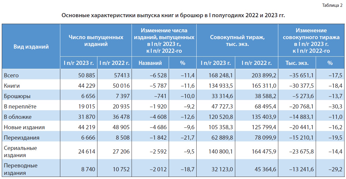 Первое полугодие 2023 г. продолжило негативную тенденцию конца 2022-го и, более того, её укрепило. Таким образом, падение книжного выпуска, о котором говорили ещё в марте — апреле 2022 г., всё же произошло, только оно стало несколько отложенным.