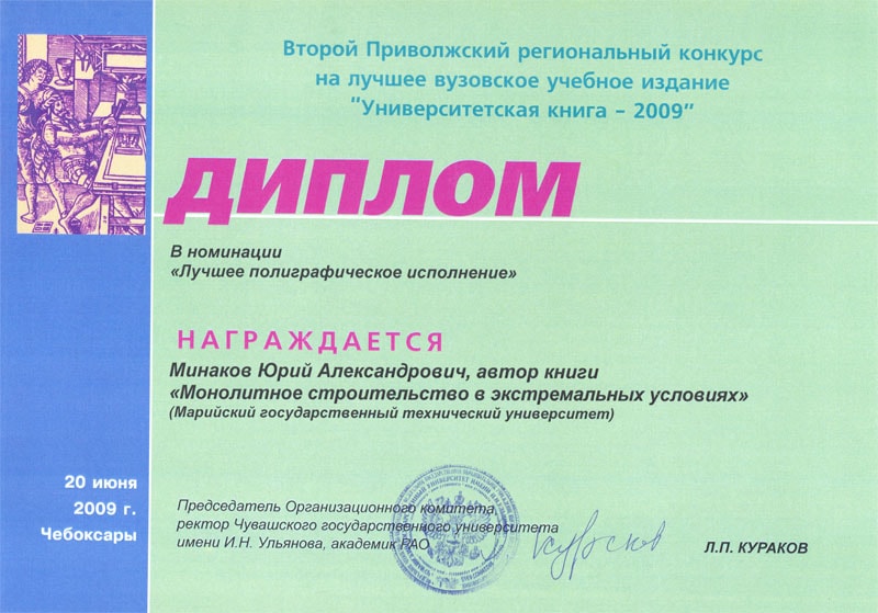 23 июня в зале заседаний ученого совета Чувашского государственного университета прошла торжественная церемония награждения победителей конкурса дипломами и грамотами. В своем вступительном слове ректор Чувашского государственного университета имени И.Н. Ульянова Л.П. Кураков отметил исключительную важность для развития вузовского книгоиздания и для повышения уровня высшего образования в стране проводимых общероссийских и региональных конкурсов «Университетская книга». Он подчеркнул особую роль в организации и проведении этих конкурсов журнала «Университетская книга».