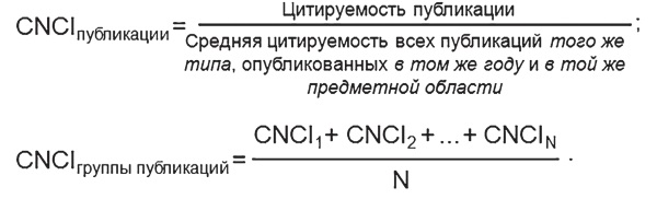 Показатель CNCI может быть больше единицы, меньше её или равен ей. Равенство означает, что публикация или группа публикаций цитируется на среднемировом уровне; бОльшие или меньшие значения соответственно означают уровень цитирования выше или ниже среднемирового. Показатель CNCI рассчитывается научно-аналитическим инструментом InCites компании Clarivate Analytics.