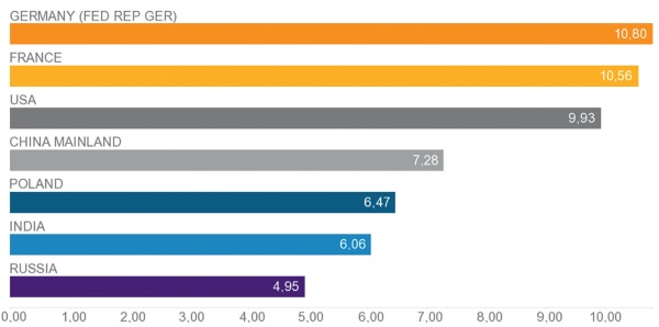 ²⁴ Рейтинг стран мира по уровню научно-исследовательской активности. Гуманитарная энциклопедия [Электронный ресурс] // Центр гуманитарных технологий, 2006–2018 (последняя редакция: 03.01.2018). — Режим доступа: http://gtmarket.ru/ratings/scientific-and-technical-activity/info .
