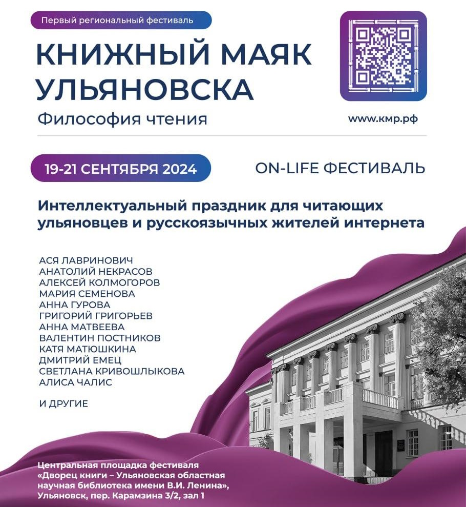 Фестивальное Движение «Книжные маяки России» представляет знаковое книжное мероприятие сентября - Фестиваль «Книжный Маяк Ульяновска», который пройдет с 19 по 21 сентября 2024 года, при поддержке Правительства Ульяновской области, в одном из самых красивых городов Поволжья.