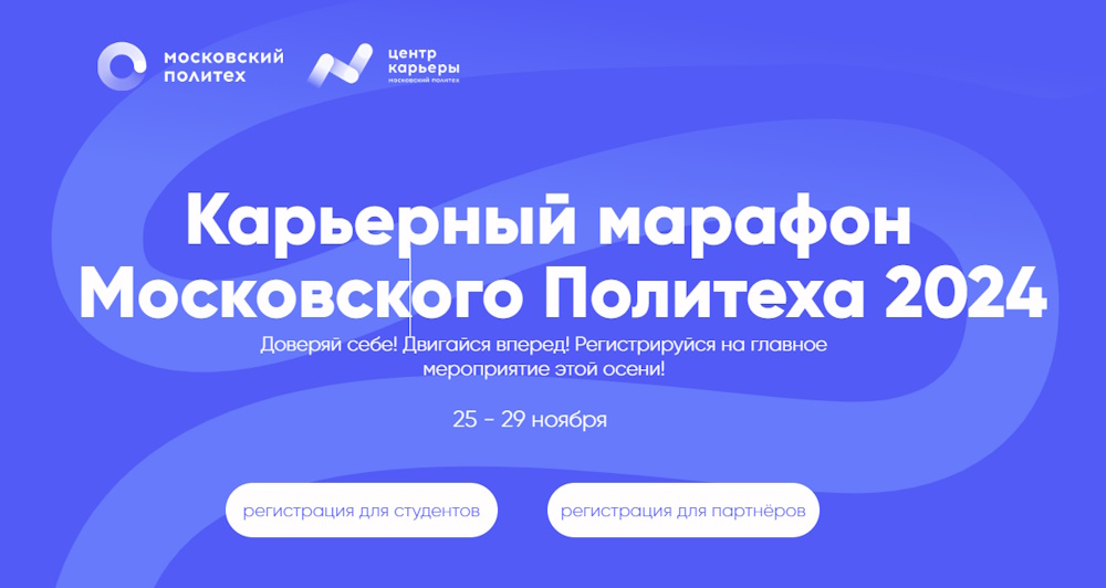 Московский Политех приглашает принять участие в Карьерном марафоне, который состоится с 25 по 29 ноября! С расписанием Карьерного марафона можно ознакомиться на сайте https://mospolycareermarafon.ru/