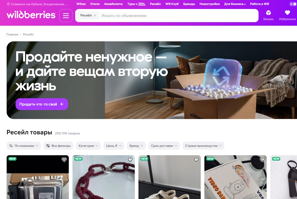 Компания РВБ (Объединенная компания Wildberries & Russ) расширила возможности C2C-сервиса (customer-to-customer) «Ресейл». Теперь пользователи маркетплейса могут размещать объявления о продаже не только товаров, ранее купленных на Wildberries, но и любых других — вне зависимости от места покупки. Обновление уже доступно на сайте и в мобильном приложении Wildberries, сообщает пресс-служба компании.