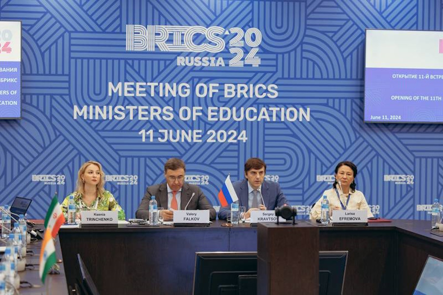 11 июня в Казани под председательством главы Минобрнауки России Валерия Фалькова состоялась 11-я встреча министров образования стран БРИКС, об этом сообщает пресс-служба ведомства. В мероприятии приняли участие министр образования ОАЭ Ахмад Аль-Фаляси, министр образования Арабской Республики Египет Мухаммад Айман Ашур, вице-министр Министерства образования КНР Чэнь Цзе, замминистра по технологиям и инновациям Министерства науки, исследований и технологий Исламской Республики Иран Омид Резаи Фар, делегаты из Индии, ЮАР и Бразилии.