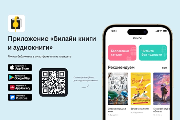 «Мы делаем чтение доступным. Например, в ноябре и декабре вы можете подключить подписку на книги за 299 рублей в месяц и получить один месяц пользования аудиокнигами в подарок. Также есть поштучная продажа: можно приобрести конкретную книгу и читать без подписки. Ну и конечно, бесплатный каталог всегда у вас под рукой в сервисе книги билайн, достаточно просто авторизоваться».