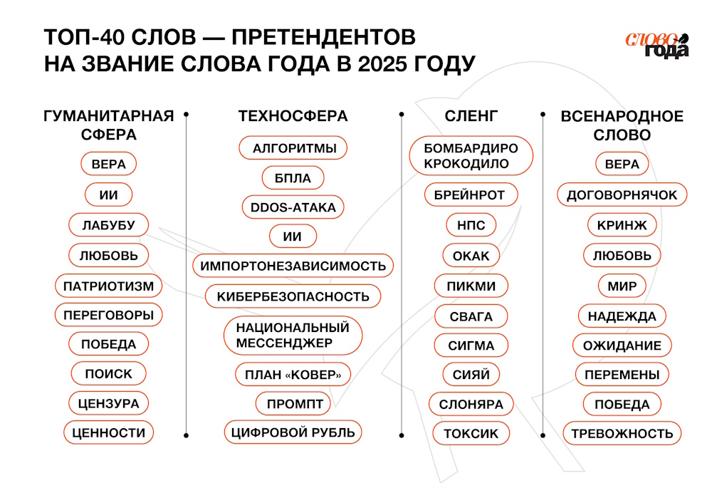 Проект «Слово года» объявил топ-40 слов — претендентов на победу в 2025 году