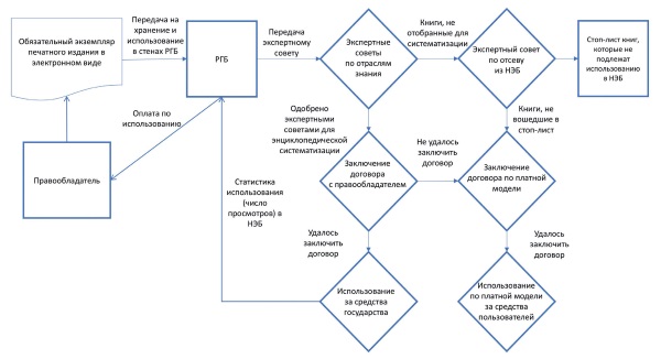 Рис. Схема использования обязательного экземпляра печатного издания в электронной форме в НЭБ. Обеспечение прямых выплат правообладателям по использованию