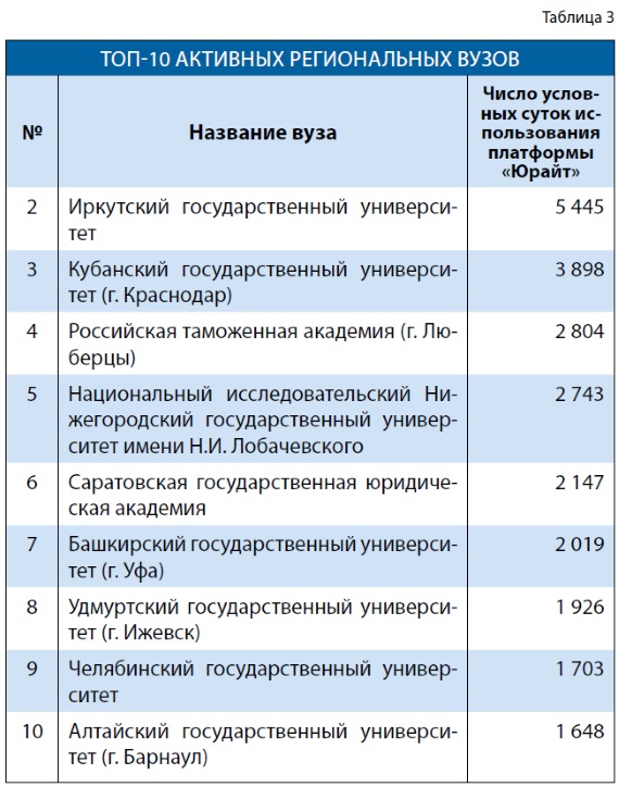 Иркутский и Кубанский государственные университеты (ИГУ и КубГУ) — примеры того, как можно достичь вершин представителям регионов. Быстрая адаптация к изменяющейся образовательной среде в сочетании с сильной корпоративной культурой и желанием администрации проводить реформы позволили им подняться на высокие ступени рейтинга. Цифровые следы показывают, что классические государственные университеты предпочитают переводить учебный процесс на платформу «Юрайт» в связи с наличием сбалансированного контента, охватывающего все направления подготовки бакалавров и магистров. Примеру ИГУ и КубГУ следуют многие другие региональные вузы.