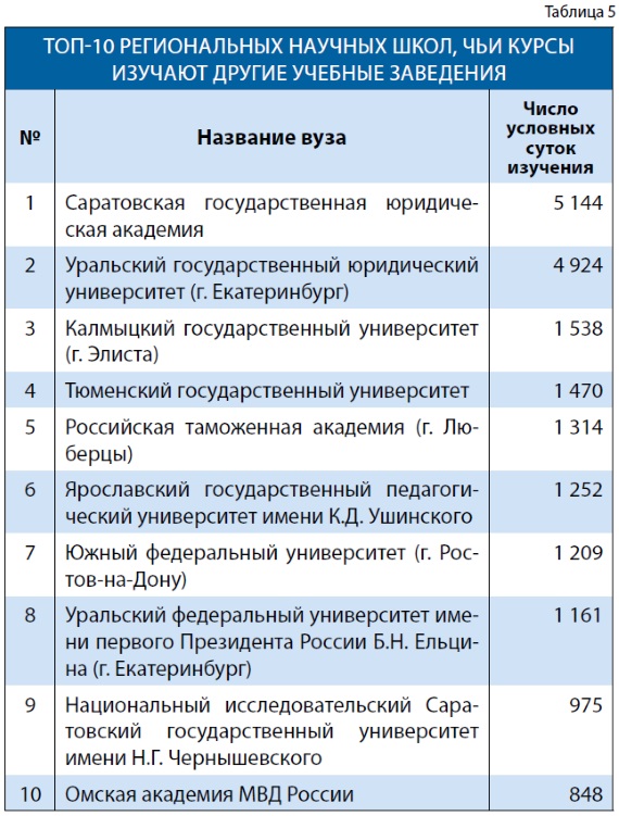 Данные рейтинга показывают: страна в высшем образовании равняется на Москву и московских авторов как в концептуальном плане, так и в методическом. Это важно отметить и в плане самоидентификации «пёстрых» межрегиональных авторских коллективов: они предпочитают обозначать себя как московские научные школы, полагая этот фактор более престижным для развития и продвижения своего курса.