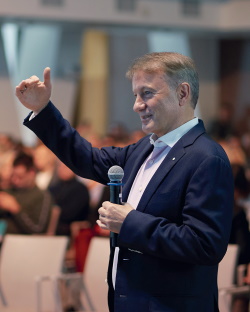 Пленарная сессия была посвящена так называемым мягким навыкам, а её модератором выступил президент, председатель Правления ПАО «Сбербанк» Герман ГРЕФ.