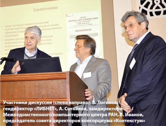 Обсуждая её, участники конференции вносили предложения, в том числе по дополнению функциональности сервисов для больших объёмов данных, интеграции новой системы с существующими информационными ресурсами. Отметив особую актуальность технологий, позволяющих интегрировать научно-образовательный контент и облегчающих доступ к нему потребителя, вице-президент Сколковского института науки и технологий по государственным программам и кооперации с промышленностью Алексей ПОНОМАРЁВ предложил воспользоваться ресурсами этого института, имеющего богатый опыт информационно-технического обеспечения и широкий выход к зарубежным информационным системам.
