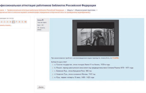Итак, никаких, хороших или плохих, отношений с невидимым экзаменатором, вход в систему выполнен, секундомер включён. На выполнение тестовых заданий у аттестуемого не больше четырёх часов. Как объясняют инициаторы проекта, тесты составляются «на основе выделения общих компетенций, которыми должен владеть библиотечный специалист, и с использованием детального перечня присущих современному библиотекарю знаний и умений». Уже подготовлены более 500 тестовых заданий, которые распределены по четырём модулям. Задания будут постоянно обновляться, дабы избежать недобросовестного использования результатов тестирования.
