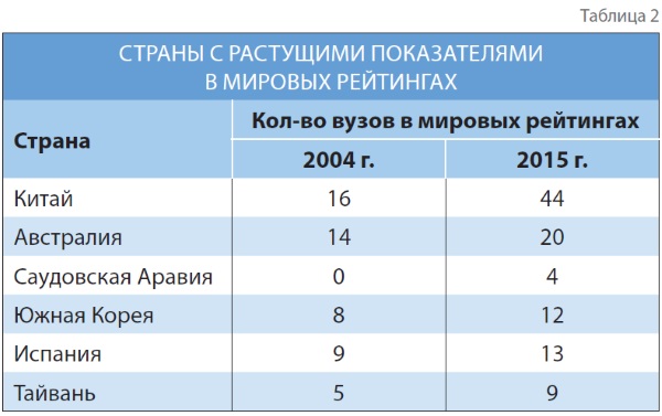В результате реализации программ повышения конкурентоспособности ряд стран серьёзно продвинулись в мировых рейтингах (табл. 2).