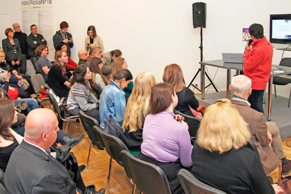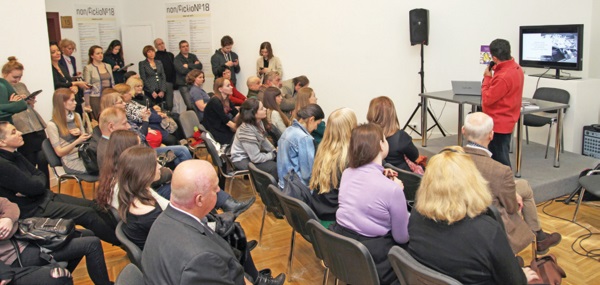 В рамках проектов Non/fictio№18, например, студенты и преподаватели курса «Цифровое книгоиздание» не только представили новые книги, среди которых первый для нас опыт сборника стихов 38 современных поэтов «Вслух. Стихи по себя» (по материалам одноимённой передачи, которая выходит на телеканале «Россия. Культура»), но и обсудили с гостями перспективы профессионализации «электронного самиздата» и специфику поиска цифровой книгой своего читателя.