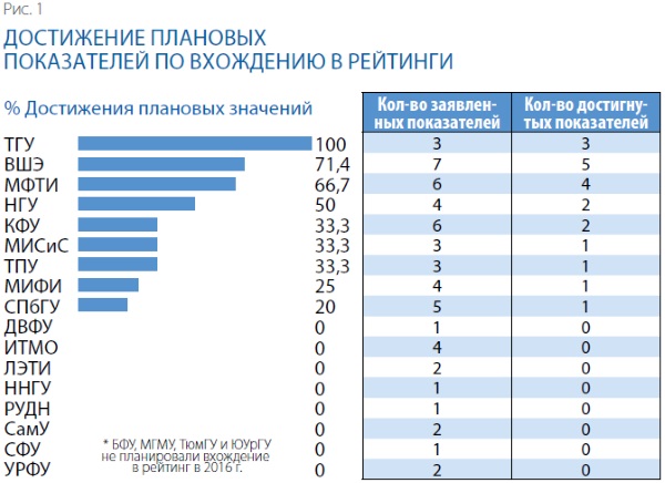 — В поручении Президента РФ ставилась задача, что не менее пяти российских университетов к 2020 г. должны войти в первую сотню ведущих мировых вузов. Несмотря на некоторые успехи в предметных рейтингах, это не является эквивалентом выполнения майского Указа В.В. Путина, который направлен на достижение стратегических показателей.