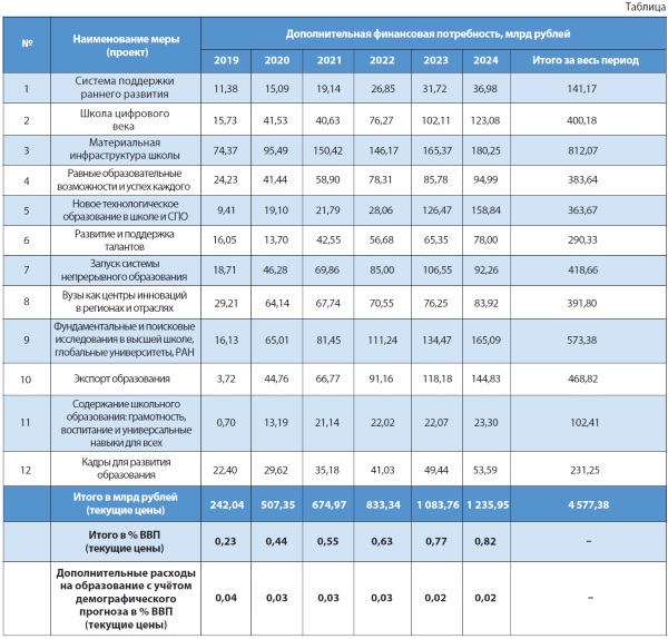 Полноценная реализация всех 12 проектов требует бюджетного финансирования на уровне 4,8% ВВП. Такой сценарий можно считать оптимальным.