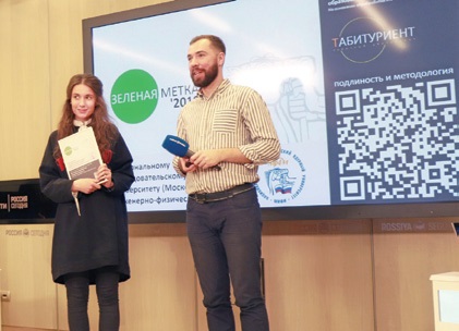 В завершение пресс-конференции В. Белый вручил дипломы университетам, удостоенным «Зелёной метки». В десятке вузов, набравших больше всего положительных отзывов студентов и признанных порталом «Типичный абитуриент» качественными поставщиками образовательных услуг, оказались: