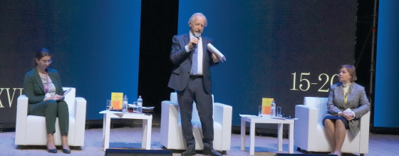 - Вера ЯЛЫШЕВА, председатель Секции по чтению РБА, заведующая Центром чтения Российской национальной библиотеки, и Елена КОЛОСОВА, член Постоянного комитета Секции по чтению РБА, заведующая отделом социологии, психологии и педагогики детского чтения Российской государственной детской библиотеки, на сцене подвели итоги II Всероссийского конкурса для библиотек «Изучаем чтение» и наградили присутствовавших в зале победителей.