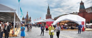 Красная площадь на время фестиваля превратилась в ярмарочную. Всё было как в старину: ведь раньше у Спасской башни торговали рукописными и печатными книгами, гравюрами, лубком. Именно здесь в начале XVIII в. Василий Киприанов открыл книжную лавку с надписью на фронтоне: «Всенародная публичная библиотека». На первом этаже продавались напитки, а на втором можно было читать книги. С нынешним фестивалем Красная площадь вернула себе книжное измерение.