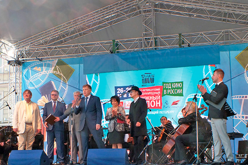 Настоящим почётным гостем книжного салона стал кинематограф. Тон задало пленарное заседание «Книга и кино в современном мире», на котором вице-губернатор Санкт-Петербурга Александр Говорунов, писатель и сценарист Андрей Константинов, Генеральный директор киностудии «Ленфильм» Эдуард Пичугин и заместитель председателя Совета министров Республики Крым Дмитрий Полонский рассуждали о взаимодействии книги и кино: о сценарии как ключевой основе фильма, необходимости создавать больше экранизаций как классики, так и современных произведений, уходе жанра романа из большого кино в сериал, важности политической воли для формирования и представления национальной идеи через литературу и кино. Итог: в государственной поддержке остро нуждаются и кинопроизводство — российских фильмов должно быть больше нынешних 17% в объёме показа, и кинопрокат — кинотеатров в стране должно быть больше имеющихся полутора тысяч, и современные литераторы, которые, по словам Андрея Константинова, вынуждены становиться «писателями выходного дня», поскольку лишены возможности зарабатывать на жизнь литературным трудом — главным образом из-за интернет-пиратства.