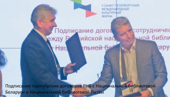 В рамках заседания состоялось подписание партнёрских договоров о сотрудничестве РНБ с Национальной библиотекой Беларуси и с Национальной библиотекой Литвы.