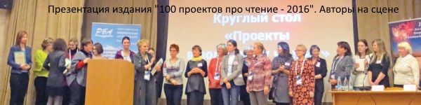 Работу конференции продолжили два круглых стола. Круглый стол «Проекты в поддержку чтения» был посвящён обсуждению реализуемых сегодня проектов, направленных на поддержку чтения детей и подростков. Обсуждение было построено вокруг презентации культурно-образовательного атласа «100 проектов про чтение — 2016» (М.: РИПОЛ классик, 2016. — 144 с.). Эта книга — продолжение издания, вышедшего в 2015 г. под названием «100 проектов в поддержку чтения+». Создание, обсуждение и внедрение в практику представленного опыта — яркий пример сотрудничества педагогического и библиотечного сообществ, их взаимодействия с общественными инициативами, постоянно возникающими в культурном пространстве страны. Издание представили Т.Г. Галактионова, один из руководителей проекта, доктор пед. наук, профессор СПбГУ, и Р.В. Раппопорт, редактор-составитель, аспирантка СПбГУ. В презентации приняли участие авторы сборника. Обе книги представлены на сайте Центра чтения РНБ.