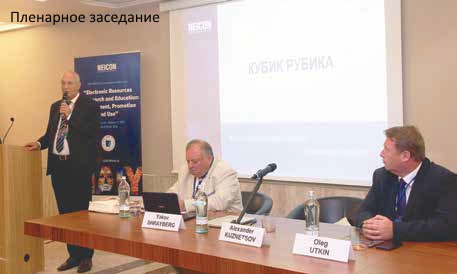 В раздаточных материалах участники конференции получили необычный предмет — кубик Рубика, на гранях которого 54 квадратика покрывали краткие названия направлений деятельности и проектов НЭИКОН. О них рассказал в открывающем докладе исполнительный директор НЭИКОН Александр КУЗНЕЦОВ. По словам эксперта, одни проекты успешны в течение всего времени их реализации, другие развиваются не столь динамично, но сохраняют потенциал, поскольку лежат в русле современных течений в научно-информационной деятельности.
