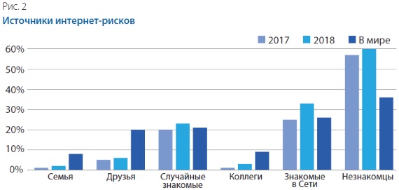 Чаще всего (в 60% случаев) источниками рисков в Сети становились незнакомые люди (рис. 2).