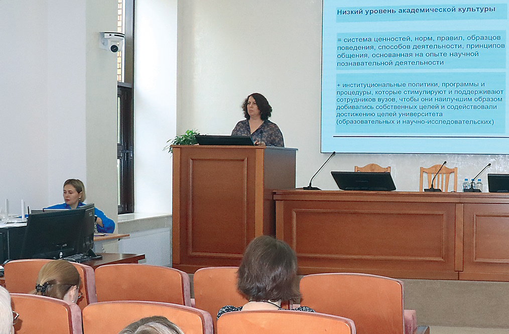 —Следует понимать, что академическая культура и нормы, признанные всем миром, являются парадигмой развития не только личности, но и образования в целом. Прежде всего необходимо обратить внимание на академические грамотность, письмо, коммуникации и ответственность. Кстати, именно отсутствие академической ответственности зарубежные журналы зачастую вменяют российским авторам в вину, —отметила Е. Тихонова.